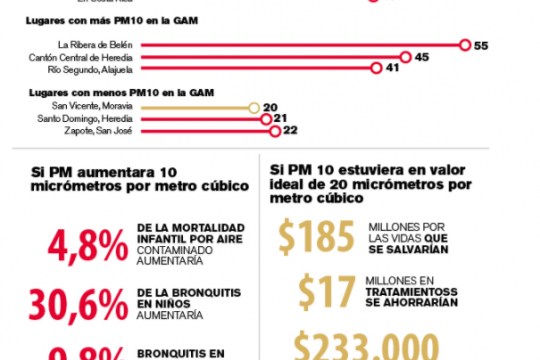 If concentrations of contaminating particles were within the limits recommended by the World Health Organization (WHO), Costa Rica would save $ 17 million a year in bronchitis care (and its impact on disabilities and quality of life), $ 55,000 in asthma and $ 233,000 in hospitalizations.