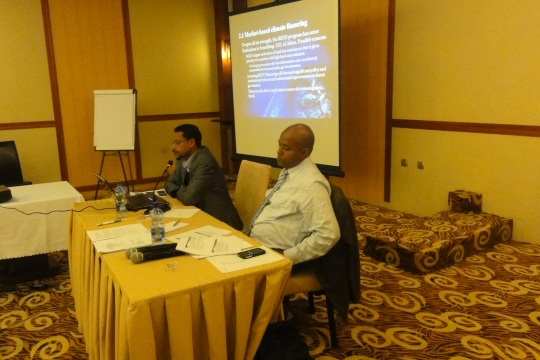 Left Dr. Assefa Seyoum from Addis Ababa University, presenting paper; right Dr. Alemu Mekonnen, Coordinator of EfD Ethiopia