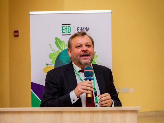 Gunnar Köhlin gave an overview of the Environment for Development (EfD) initiative. His presentation situated the work of EfD Ghana in the global network’s overarching goal to promote sustainable development through robust research, and evidence-led advocacy and capacity development.