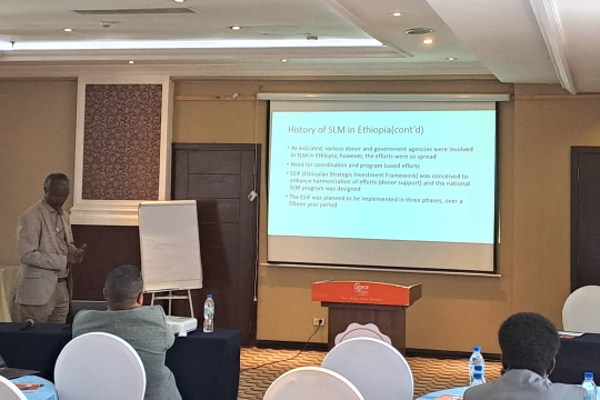 Dr. Zenebe G. talks about sustainable land management (SLM). Photo: EfD Ethiopia.