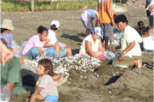 Community based approaches could become a feasible alternative to regulate turtle egg harvesting and to involve local people in the protection of turtles. However, its success depends on the compliance of rules devised for this purpose. The factors that trigger the motivation to comply over time with these rules might be linked to economic incentives, the perception of rule legitimacy, moral issues and social norms, among other important elements. We analyzed these issues in Ostional National Wildlife Refuge (ONWR), located in the pacific coast of Costa Rica, one of the largest olive ridley turtle (Lepidochelys olivacea) nesting beaches in the world. After considerable conflicts between local dwellers and the Costa Rican government, turtle egg harvesting is legally allowed to a community organization. This community organization needs to comply with certain harvesting thresholds monitored by the central government.