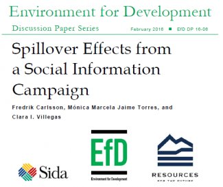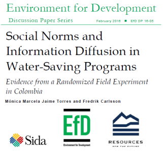 | EfD Discussion Paper | Chile, SwedenThis paper investigates direct and spillover effects of a social information campaign aimed at encouraging residential water savings in Colombia. The campaign was organized as a randomized field…