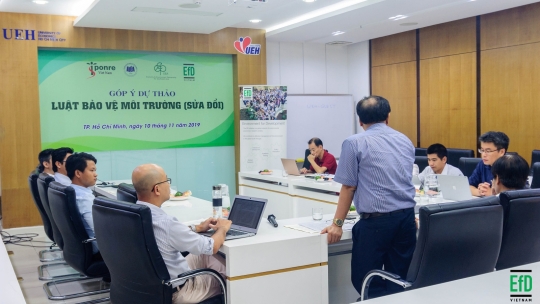 On 10 November 2019, by the request of the Minister, the EfD-Vietnam together with the Ministry of Natural Resources and Environment Institute of Strategy and Policy discuss about the draft of the law and focused mainly on the new chapter. At the dialogue, the policy implications to policymakers were synthesized from published research works, from practical experience when doing the experiment and survey and contact with stakeholders. In addition to the basic principles of environmental policy adopted in the Environmental Laws from developed and developing countries, various types of environmental management tools are discussed in detail, including: (i) Regulatory tools (Technology standards and performance standards); (ii) Market-based instruments (Taxes, fees, charges, subsidy, deposit & refund, tradable permits); (iii) Information-based tools (Voluntary agreements, information provision, education); and (iv) Other tools (such as Research & Development, behavioral nudges, and legal responsibility). In which, the content of tools based on Market-Based Approaches was discussed in depth and thoroughly including tax, non-tax and ownership for the tradeable emission permits market and the emissions reducing credits. Other topics that complement the bylaws were also presented at the discussion such as insurance, eco-labels and public procurement, and ecological compensation mechanisms.